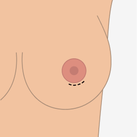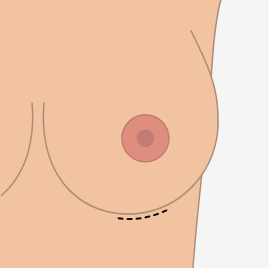 An inframammary incision is placed within the breast (or inframammary) crease