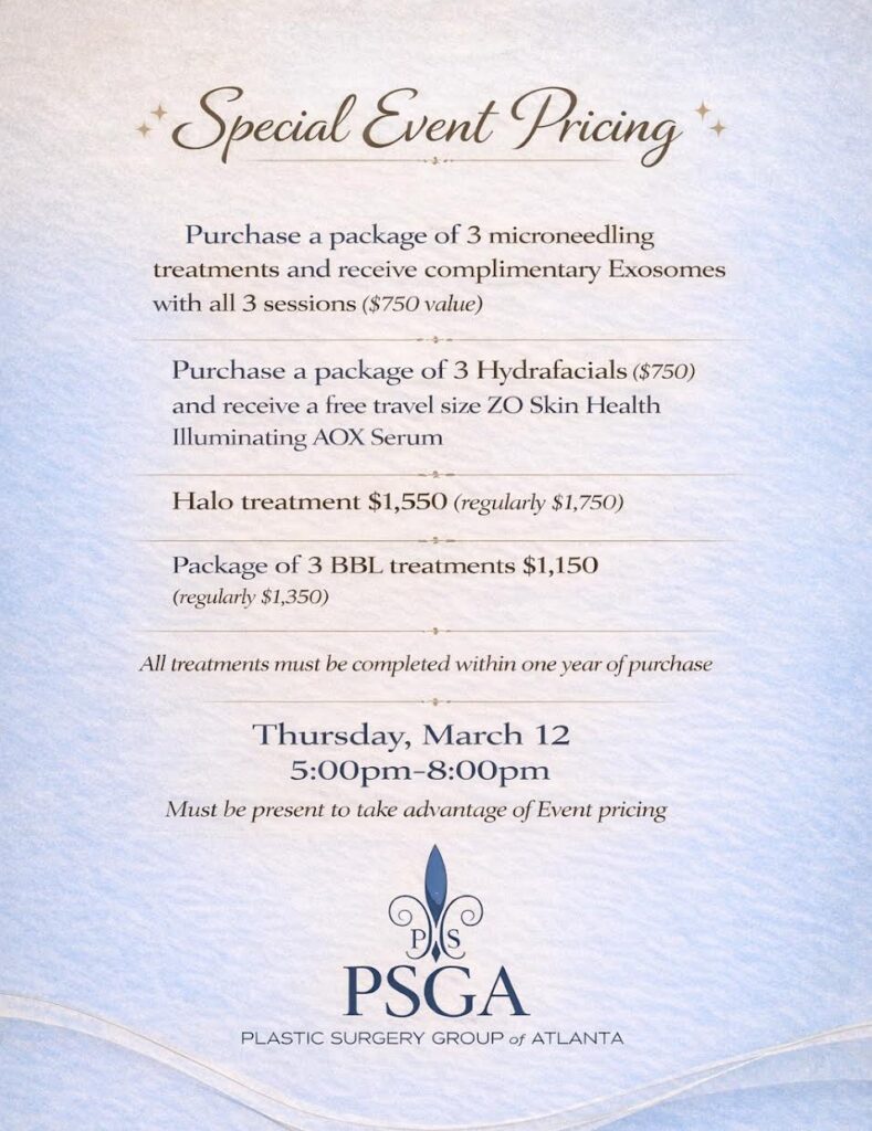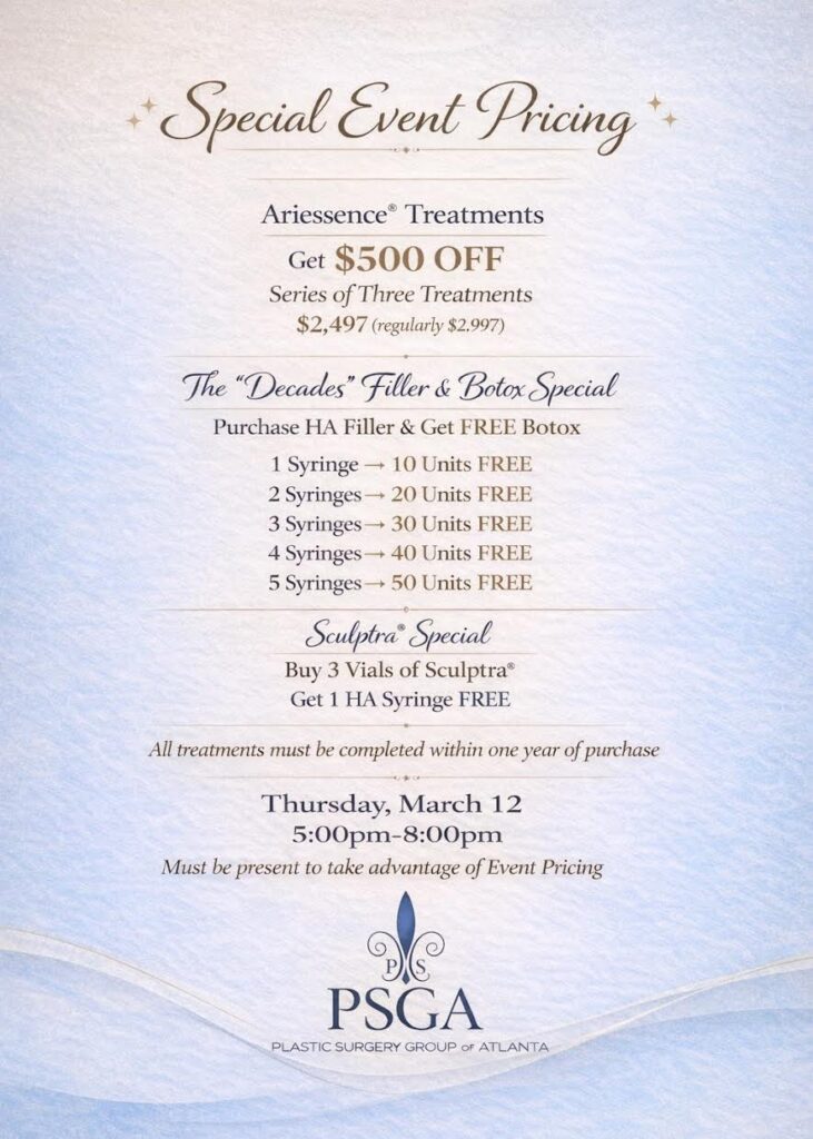 Join Plastic Surgery Group of Atlanta for a special Meet & Greet event, where we’ll welcome